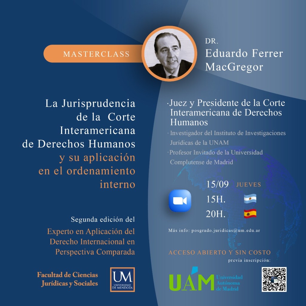Inauguramos la segunda edición del Título Experto en aplicación del Derecho Internacional en perspectiva comparada con una conferencia del Prof. Dr. Eduardo Ferrer McGregor, Juez y Presidente de la Corte Interamericana de Derechos Humanos. Es para nosotros un honor y un privilegio contar con su magisterio y estamos muy agradecidos de que haya aceptado tan generosamente nuestra invitación.
