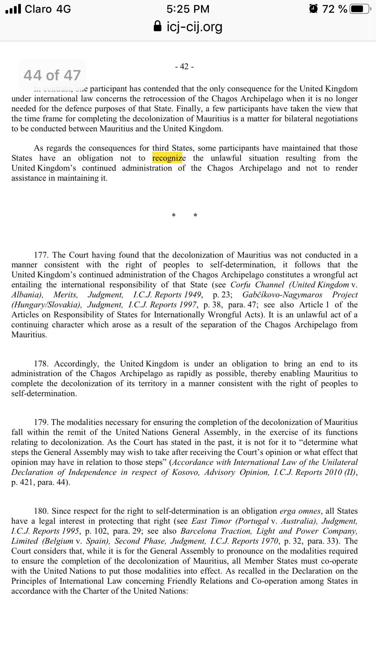 p.s. adjunto imágenes de lo dicho por la Corte Internacional de Justicia y Estados con ocasión de su opinión consultiva en el asunto Chagos que confirman lo anterior.